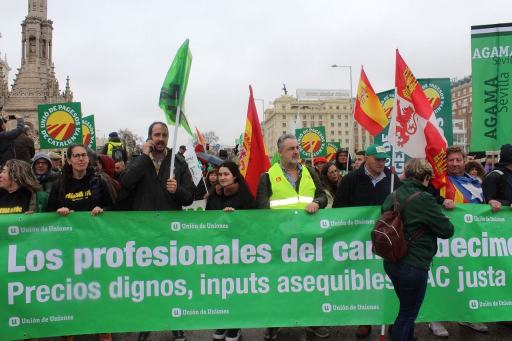 Més de 440 llauradors i ramaders de La Unió Llauradora i Ramadera, acompanyats per 10 tractors, s’han desplaçat hui fins a Madrid per participar en la gran manifestació del camp que ha culminat davant el Ministeri d’Agricultura. La protesta, convocada per l’organització estatal Unión de Uniones, ha volgut denunciar el que consideren unes polítiques agràries perjudicials per al sector. La delegació valenciana ha eixit de matinada en autobús des de diferents comarques: 220 persones de València, 110 d’Alacant i 110 de Castelló. El malestar al camp és creixent. Els professionals denuncien l’augment dels costos de producció, agreujat per la guerra d’Ucraïna, la incertesa sobre la futura Política Agrària Comuna (PAC), que podria retallar ajudes fins a un 22% i la competència d’acords comercials com el de Mercosur o el de Marroc, que, asseguren, no exigixen les mateixes condicions sanitàries, ambientals i laborals que a la producció europea. A més, el sector ramader afronta problemes sanitaris com la pesta porcina africana o la influença aviària, que compliquen encara més la situació. Els manifestants reclamen una PAC ben dotada, preus justos que cobrisquen els costos, menys burocràcia i més suport per a garantir el relleu generacional. Esta és la quarta mobilització que La Unió convoca en menys de dos mesos. L’organització advertix que, si no hi ha canvis, les protestes continuaran.