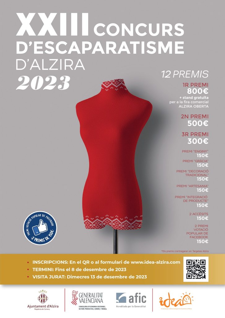 La 23 edició del concurs d’escaparatisme avança i prompte coneixerem els guanyadors dels premis a millor aparador de la ciutat. L’entrega es farà el dia 21 de desembre a les 20:45 a la quarta planta de l’Ajuntament d’Alzira. El dimecres 13 començà la votació a Facebook que decidirà els dos premis de votació popular entre els 74 comerços que s’han presentat. Els dos aparadors més votats rebran un premi de 150 euros i a més, amb esta iniciativa aconseguixen molta vis ibilitat a les xarxes socials. A punt d’acabar la votació, els dos comerços amb més m’agrada són Gresa Indumentària i Sergio Fernández Imagen y belleza, però demà dimarts 19 és l’últim dia per votar i encara pot canviar. També este dimecres el jurat professional del concurs va visitar tots els comerços per a fer les seues valoracions. Este jurat entregarà el dia 21 nou premis més. El primer, segon i tercer premis estan dotats en 800, 500 i 300 euros respectivament. A més, el comerç que obtinga el primer premi tindrà un Stand a la Fira del Comerç Alzira Oberta. També es premiaran els aparadors amb més enginy, més gràcia, millor decoració tradicional, artesania i per últim s’entregaran dos accèsits. Tots estos premis estan dotats amb 150 euros cada un.