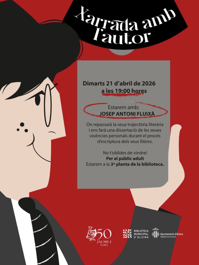La Biblioteca Municipal d’Alzira acull una xarrada amb l’escriptor Josep Antoni Fluixà per repassar la seua trajectòria literària i comentar les seues obres