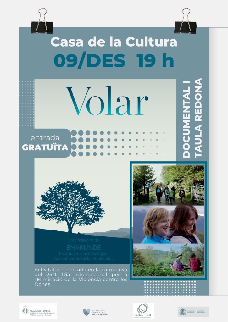 Alzira continua commemorant el 25N, el dia de la violència contra les dones i ho fa hui amb la projecció d’un documental i una taula redona en la Casa de la Cultura. Es tracta la pel·lícula Volar, un documental del 2017 que es va estrenar al Festival de Sant Sebastià i que ha rebut el premi a millor documental en el Festival de cine de Copenhaguen. Esta pel·lícula reunix nou dones basques, nou supervivents de perfils molt diferents de la violència de gènere. En el documental, les nou dones passen un cap de setmana en el camp i allí dialoguen, recorden, reflexionen i revelen tot el que comporta esta violència. El que han viscut, les conseqüències del que han patit, deixant a un costat la por i el pudor, ens van contant totes les fases per les quals han travessat: la negació inicial, el desconcert, la por, la presa de consciència, la sol·licitud d’ajuda, la denúncia, les amenaces. A més de la projecció de la pel·lícula, tot seguit es farà una taula redona on es parlarà sobre les diferents violències masclistes i fent menció a l’edatisme en este context. Recordem que enguany el 25N s’ha commemorat a Alzira en clau de dones majors, per tal de parar atenció en què ha significat i de quina manera han viscut durant anys la violència masclista.