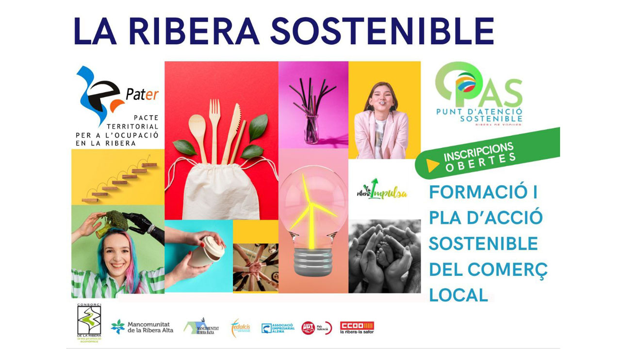 A través del Punt d’Atenció Sostenible (PAS), impulsat pel PATER (Pacte Territorial per a l’Ocupació en la Ribera) del Consorci de la Ribera, es posa en marxa un itinerari específic dirigit al comerç local de la comarca. La formació conclourà amb la creació d’una marca pròpia de comerç sostenible, que distingirà els establiments participants que elaboren el seu pla de sostenibilitat.