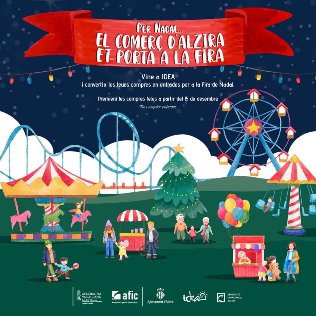 Hui comença la campanya “Per Nadal el comerç d’Alzira et porta a la fira”. A partir d’este dilluns, amb les compres que es realitzen als comerços locals del municipi es podran obtindre fins a quatre entrades, per persona, per a la fira de Nadal que comptarà enguany amb unes 20 atraccions. L’objectiu d’esta iniciativa, impulsada per Idea, és fomentar les compres al comerç local. Com a novetat, enguany caldrà presentar els tiquets a l’edifici d’Idea per poder aconseguir les entrades que té un horari de 08.00 hores fins a les 20.00 hores de manera ininterrompuda. Teresa Pons, tècnica d’Idea, explica que la ciutat també es construïx pels actes de compra al comerç local per part de veïns i veïnes. Les entrades estan disponibles fins a esgotar existències. Segons Pons, en total es podran adquirir 4 entrades per persona, i la quantitat varia depenent de la despesa total. Per cert, les entrades es podran utilitzar a la Fira de Nadal del municipi, que comptarà amb una vintena d’atraccions i diversos espais de restauració. Enguany, l’acte d’inauguració tindrà lloc el 19 de desembre i la fira s’allargarà durant totes les festes nadalenques.